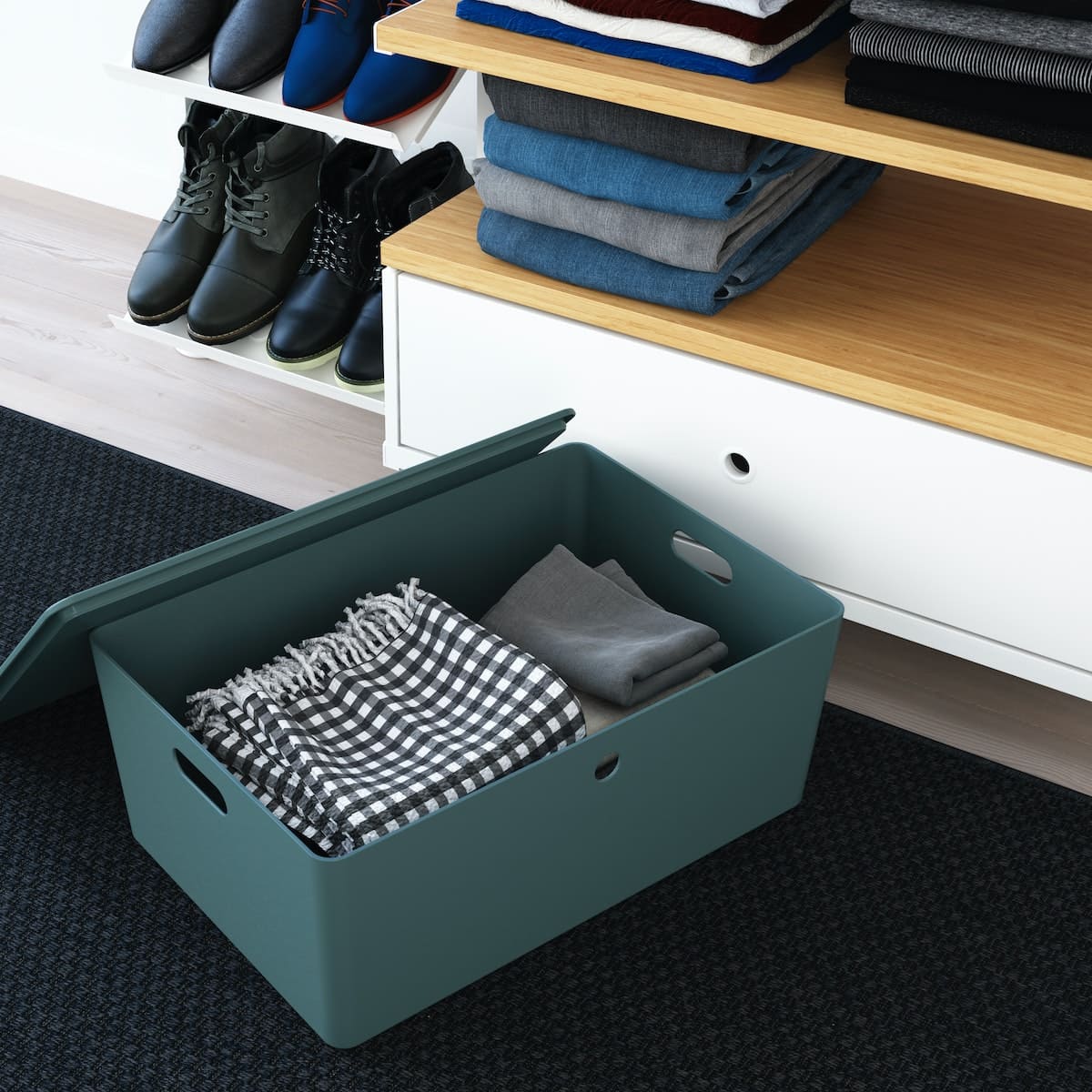 冬天的毛衣、毛褲、圍巾不知道該收去哪?KUGGIS儲物格,絕對是你的好選擇!可搭配40公分BESTÅ層架組和其他深37公分以上的層架組,整齊收納不同尺寸的物品。不同尺寸的收納盒也可相互堆疊,側邊附把手,即使是放在衣櫃最上層的淺層板上,也能方便拉出使用。