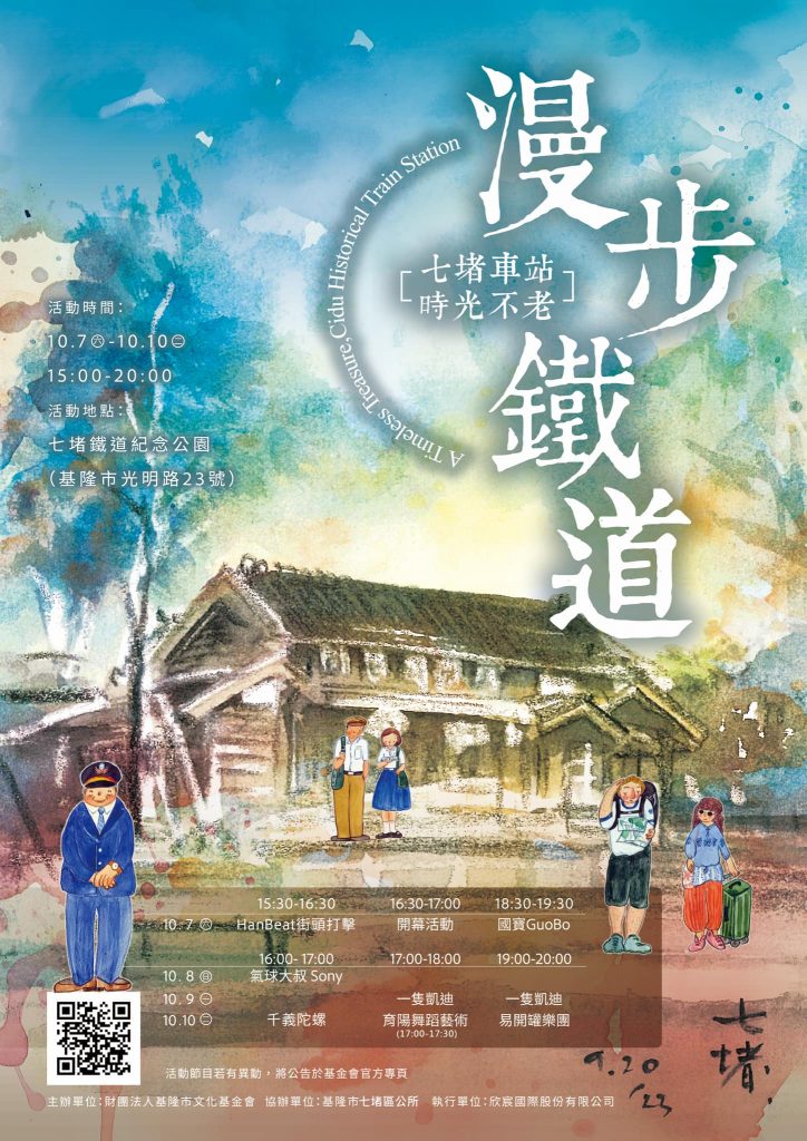 基隆市文化基金會為了迎接雙十連假的到來,將於十月七日至十月十日每日下午三時至晚間八時在七堵鐵道紀念公園舉辦「漫步鐵道 七堵車站 時光不老」活動,讓民眾一同歡度假期。