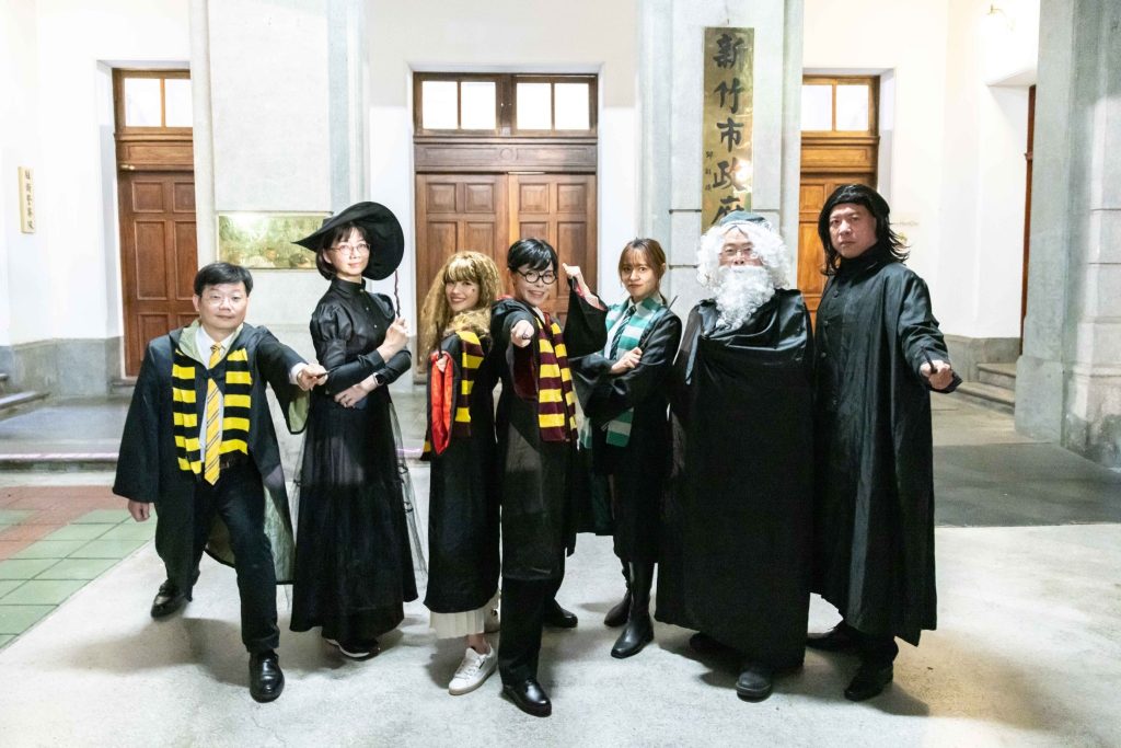 「萬聖節快樂!Happy Halloween!」在現場民眾齊聲大喊下,高市長化身為哈利波特,率領市府團隊裝扮魔法學院,秘書長張治祥化身麥教授、教育處長陳木金為鄧不利多、發言人徐千晴為妙麗、城銷處長嚴翊琦為石內卜、民政處長施淑婷為史萊哲林、文化局代理局長李欣耀為赫夫帕夫學院等魔法師一起從府前廣場出發,環繞東門圓環上街遊行搗蛋,沿途和大小朋友一同觀賞精采的特技馬戲、趣味雜耍及氣球秀,高市長也和許多市民在東門街及文化街交叉口的玩具盒打卡區,留下「離箱出走」的超Q合照,大展親民魅力。