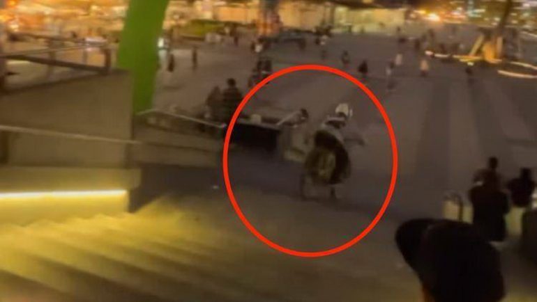 單車騎士將車站廣場的樓梯當成極限車場,將單車飛躍約二、三層樓高,引發網友討論。(記者陳金龍翻攝) 單車騎士將車站廣場的樓梯當成極限車場,將單車飛躍約二、三層樓高,引發網友討論。(記者陳金龍翻攝) 記者陳金龍/台中報導 有民眾在台中車站拍到一名單車騎士將車站廣場的樓梯當成極限車場,展現彈跳技術,將單車飛躍約二、三層樓高之下,網友將影片PO網上傳,引發討論。第三警分局表示,騎乘區域是人行道範圍,將查明車主後,通知到案說明。 第三警分局表示,有關台中車站自行車騎乘一案,依據道路交通管理條例第三條第一項第三款,經查為騎乘區域為人行道範圍。 警方指出,依據影片影像內容,依據道路交通管理處罰條例第七十四條第一項第五款,慢車駕駛人在人行道行駛處罰三百元以上至一千二百元以下,呼籲民眾任何類似的活動應在合法的運動場所進行,切勿於道路上競技,以確保公共安全。