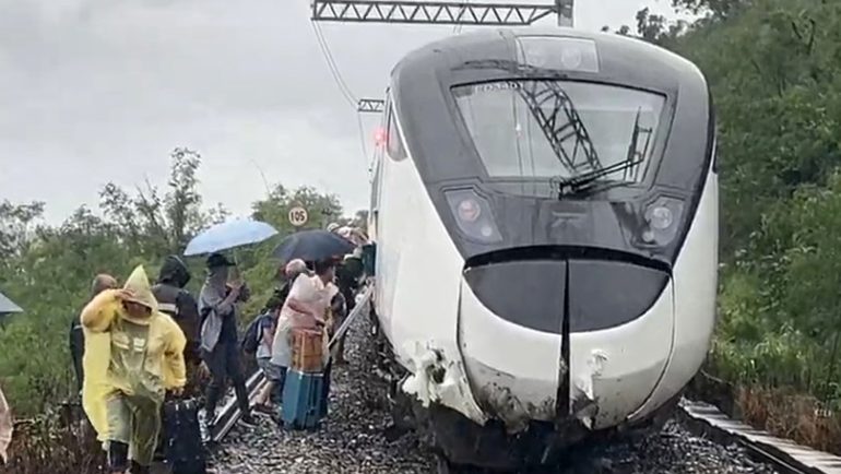 受颱風樺加沙帶來的豪雨影響,台九線三四一公里鹿鳴橋至龍過脈路段,二十四日清晨發生土石泥流,泥沙自山區溢流至橋面,導致交通中斷。經公路局台東工務段緊急調派機具搶修,至下午二時已恢復雙向通行,現場由工務段人員指揮交通。