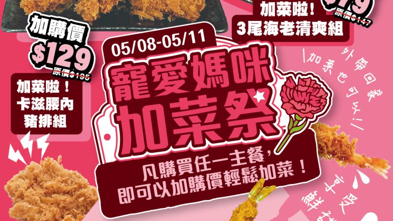 此次活動以「加菜」為出發點,推出三款搭配,凡點購任一主餐即可以超值優惠價加購。「加菜啦!卡滋腰內豬排組」加購價$129,一份共有三塊饕客必點的人氣腰內肉,酥酥脆脆,絕對可以滿足家人分享或一人獨享的快樂。「加菜啦!3尾海老清爽組」加購價$79一次同時享有3隻酥炸海老,外層酥香不膩包裹著可口的蝦肉,每一尾炸海老都是視覺與味覺的雙重饗宴。「加菜啦!肉肉3合1組」加購價$99,一盤即可享受到三款經典菜品,澎湃滿足,是選擇障礙者的完美解方,怎麼搭都不踩雷!