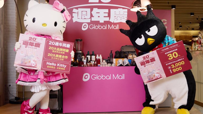 Global Mall 《20週年慶》首波將於10月9日至22日展開,以20週年慶典活動為主軸,祭出消費「滿額贈最高回饋30%」,首次綁定GMpay搭配Global Mall聯名卡於新北中和、桃園A8、A19及屏東市首筆消費滿3,000元最高送價值900元;另板橋車站、南港車站、林口A9、新左營車站則為消費滿2,000元送200元。除了超值回饋外,聯手20大品牌推出獨家商品,從美妝保養香氛、休閒潮流到美感家電推6折起;此外,更攜手全球最具人氣的可愛代表Hello Kitty推出一系列限定活動,聯名會員禮、《三麗鷗大明星》快閃店以及全台八店聯展拍照打卡點,全面鎖定親子與粉絲商機。