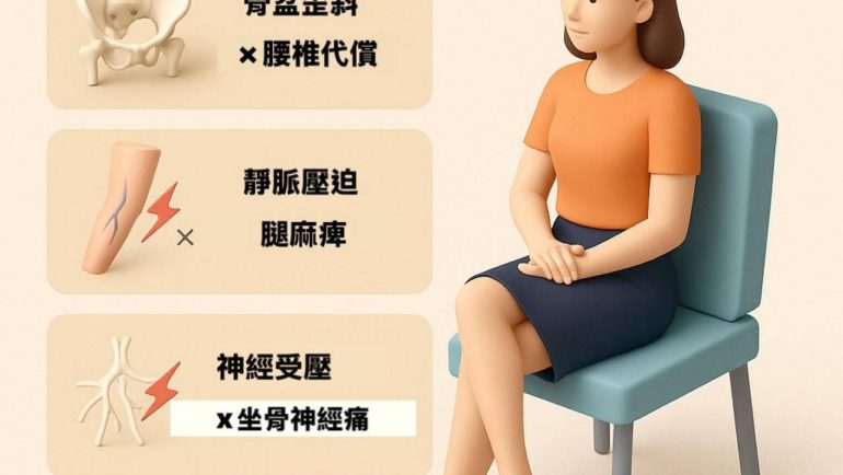 研究也證實,長期翹腳者的骨盆旋轉角度,明顯高於未翹腳者。此外,翹腳時大腿下方的靜脈受到壓迫,血液循環不良,小腿容易腫脹、麻木。若連續翹腳超過10分鐘,下肢靜脈壓力即會上升,增加靜脈曲張風險。黃軒提醒,若你常感覺「腳麻得像螞蟻在走」,那可能是腓總神經被壓迫,長期下來甚至導致暫時性麻痺或坐骨神經痛。