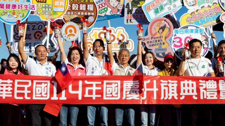 台中市政府一一四年雙十國慶升旗典禮,十日在府前廣場盛大舉行,七十六位民防義警及霹靂小組聯手展護全國最大長三十六公尺、寬二十四公尺的巨幅國旗進場,場面吸睛壯觀,全場突破二萬三千人次參加刷新紀錄。市長盧秀燕致詞表示,七年前她上任時,台中在文化、經濟、醫療與公共設施各方面皆存在明顯不足,市府團隊在財政吃緊的情況下,仍展現魄力與決心,全力推動重大建設,今年是歡欣豐收的一年,眾多建設將陸續啟用,展現具體成果。