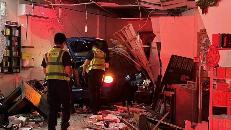 四十三歲劉姓男子九日凌晨毒駕一輛藍色BMW轎車,行經台中市西區五權西路疑似來不及轉彎,高速直衝撞進一樓的茶葉行,釀睡在隔間後方上下舖的母子一死一傷,其中八十七歲李姓老婦腰部斷裂不治,六十一歲兒子張姓屋主悲痛不已,檢警經採尿驗出劉體內有安非他命,將朝毒駕致死罪嫌偵辦。
