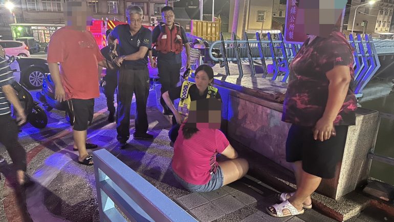 布袋分局表示,日前傍晚6至8時許,熱心民眾發現一名身穿紅衣女子在布新橋上徘徊舉止異常,疑似欲輕生,隨即報警。員警黃于倫、黃嘉倫到場時,蔡女雖被親友拉住,但情緒仍極度激動。員警為避免衝突,先請親友退至一旁,再將女子帶返派出所,並提供茶水安撫,耐心勸說與傾聽,最終成功化解危機,將她平安交由家人帶回休養。