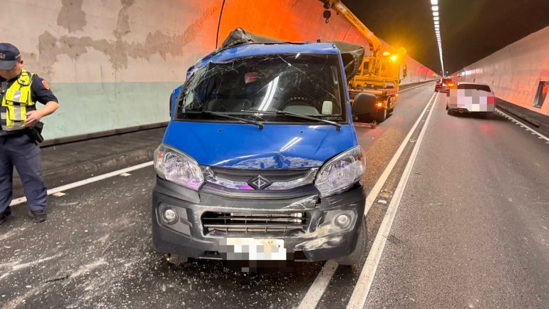 國九隊表示,小貨車失控車禍車兩先撞擊外側施工廊道,再失控擦撞內側牆壁後,車輛橫停在車道上。所幸駕駛未受傷,經酒測值為零,但同車何姓女乘客手腳及頸部受輕傷,送礁溪杏和醫院治療,晚上八時二十分排除,隧道恢復通行。