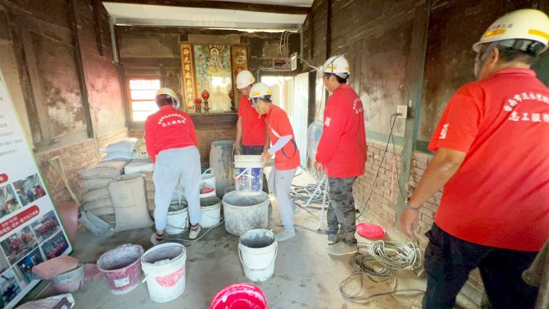 泥水志工連假不放假,到後壁區為弱勢家庭房屋修繕。(勞工局提供) 記者陳佳伶/新營報導 教師節連假第二天,南市勞工局二十八日依然帶領「做工行善團」到後壁區,為弱勢家庭房屋修繕,市長黃偉哲太太劉育菁是一名國小老師,她在教師節也沒有休息,帶著餐點和飲品前往後壁區慰勞修繕志工的辛勞,也送月餅給案主,預祝中秋快樂。 後壁區上茄苳里的這處修繕案,現年七十六歲的郭姓案主重度身障,加上是中低收入戶,居住老屋在丹娜絲風災中受損,無力自行修繕,做工行善團由九月初起由各工會志工陸續前往修繕房屋,教師節連假第一天由電氣志工進行內外線路配置施工,二十八日由泥水志工接手,進場進行地坪抹平,後續還有木工、油漆等工會志工接力,持續改善案主居住環境,預計十月中旬完工。 市長夫人劉育菁(第一排左四)慰勞志工的辛勞,志工們則祝福她教師節快樂。(勞工局提供) 市長夫人劉育菁帶著餐點與飲品慰勞志工,也感謝勞工局團隊的辛勞;對於志工們連假不休息,繼續為弱勢家庭改善居住環境,揮汗付出、不求回報,表達深深的謝意;並送月餅給案主,祝福中秋佳節快樂,傳遞溫暖給案家。 志工們看到劉育菁老師到現場,為大家打氣都十分開心,也紛紛祝福她教師節快樂,場面溫馨。 泥水工會的「父子檔志工」陳克銘、陳柏融是現場亮點,陳柏融在一一一年因緣際會投入修繕志工行列,獲悉兒子陳柏融利用時間以自己的專業技能做好事後,陳克銘也報名跟進,一家人一起為弱勢戶出力,是展現專業與親情兼具的動人故事。 勞工局長王鑫基感謝所有志工假期仍堅守崗位,為弱勢付出專業與時間,尤其是家庭志工,家人一起行動、假日共同公益付出,為社會帶來溫暖與希望。