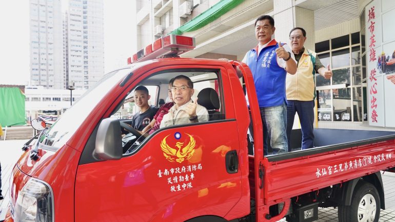 水仙宮三兄弟魚湯店為台南知名美食店家,九日捐贈一輛價值一三八萬元的災情勘查車予義勇消防總隊救生中隊使用。消防局長李明峯九日代表受贈,特別感謝民間業者善心義舉。