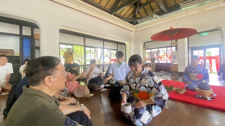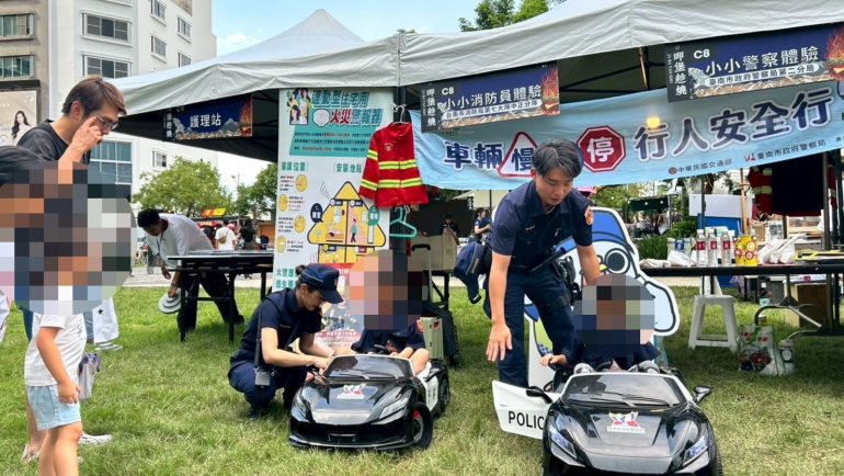 永康開天聖明宮舉辦慶讚中元宴,創辦人陳俊銘醫師(右一)親自主持,永康區長李皇興(左二)、市議員林燕祝、王家貞與祭。(記者趙傳安)
