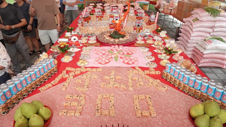 永康開天聖明宮舉辦慶讚中元宴,場面相當熱鬧。(記者趙傳安攝)
