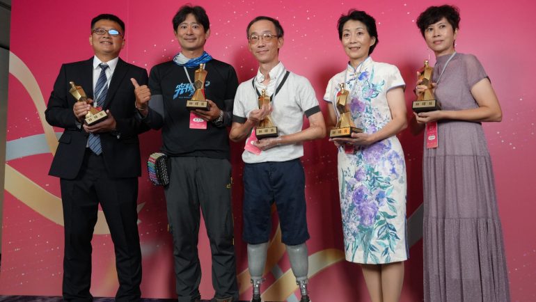 一一四年師鐸獎頒獎,共七十二名教師獲獎。左起新北三多國小江彥麟、基隆安樂高中黃乃文、中山大學企管系副教授王致遠、桃園會稽國中教師倪同娟、花蓮高商教師江曾為美。(中央社)