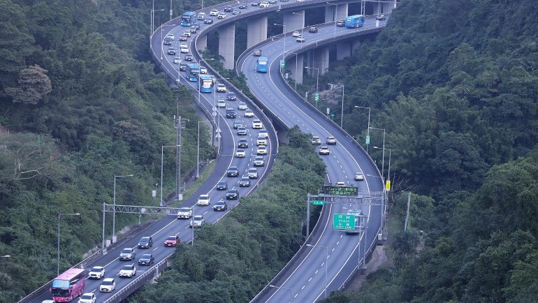 中秋連假尾聲,六日收假日國道五號北向宜蘭至坪林段傍晚湧現車潮,根據高公局即時路況,傍晚六時許該路段平均車速約落在四十至六十公里間。(中央社)