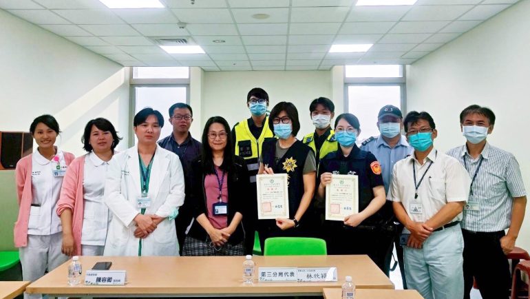 除安南醫院急診醫護外,保全、行政、職安室及社工等單位也共同參與演練,安南醫院也邀請警三分局偵查隊偵查員林欣穎、轄區和順所警員郭昱谷協助指導,確保暴力事件發生當下,能有效維護秩序並保存證據,以利警方立即介入並進入司法程序。