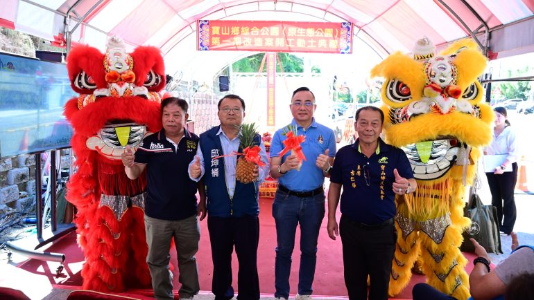 寶山鄉長邱振瑋表示,整體工程分三期推動,第一、二期總經費逾新臺幣六千一百八十二萬元,第一期「公園入口拓寬及坡道新建工程」二十日舉行開工動土,工期預計一百五十個日曆天,主要針對公園北側入口進行全面改善。過去由於邊坡圍牆阻隔,導致入口視線不佳、空間封閉,不僅視覺壓迫感強,也形成治安死角。此次工程將原有狹窄入口拓寬為迎賓大廣場,及十公尺寬的入園道,視線通透,顯著提升整體空間感與安全性。
