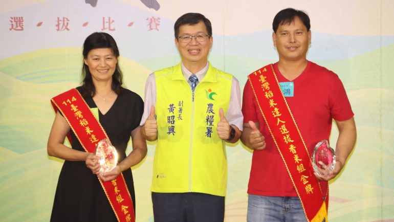 國內最具指標性的稻米競賽「台灣稻米達人選拔」,今(1)日由農糧署黃昭興副署長親自揭曉今(114)年度金牌得主!今年「香米組」由富里鄉黃治鴻以高雄147號奪冠,「非香米組」則由池上鄉黃銘雀以臺稉2號拔得頭籌。兩位金牌得主所栽培的稻米,米粒晶瑩剔透、飯香Q彈回甘,成功突破全台47個鄉鎮、768位專業農友拿下本年度米王寶座,現場掌聲不斷,農友喜悅之情溢於言表。