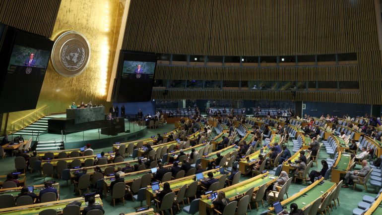 聯合國大會通過的二七五八號決議,近期再度引爆台美陸三方交鋒。圖為聯合國大會開會情形。(路透,資料照)
