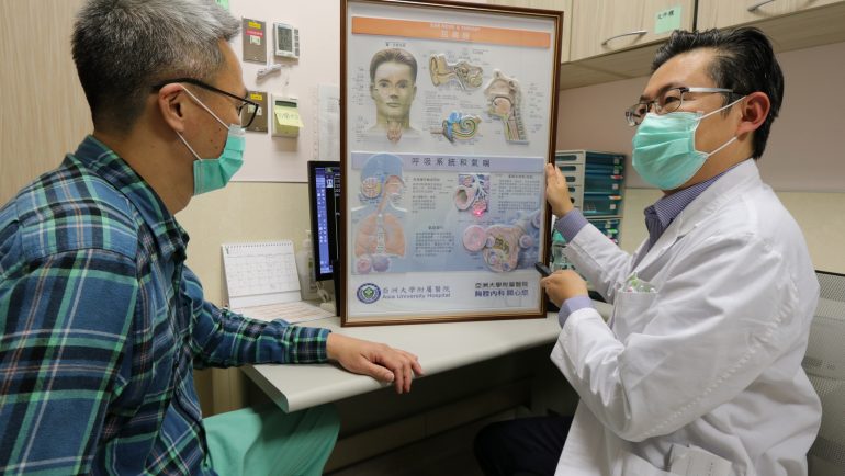 醫師林衛邑說明提早清除類澱粉蛋白藥物,為阿茲海默症患者爭取黃金時間延緩退化。(聯新國際醫院提供)