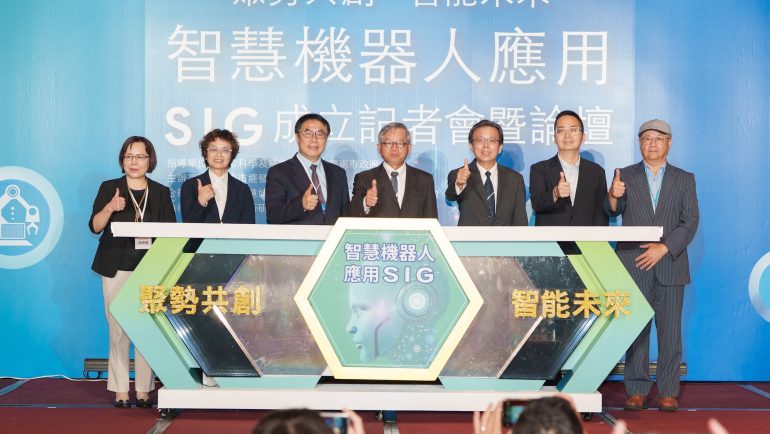 行政院今年6月宣布「智慧機器人產業推動方案」,臺南市政府積極串聯產學研資源,與台灣智慧城市產業聯盟(TSSA)及台北市電腦商業同業公會共同合作,10 月 8 日在台大國際會議中心盛大舉行「智慧機器人應用 SIG 成立記者會暨論壇」。「智慧機器人應用SIG(Special Interest Group)」匯聚超過50家廠商,涵蓋大小企業與新創,包含:華碩電腦、和碩聯合、信驊科技(酷博樂)、悠泰科技、盟立自動化、達明機器人、博鈞科技、Sigma Robotics等,廠商數並持續擴增中。