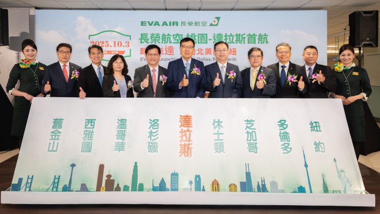 長榮航空睽違9年再度開闢北美新航點首航桃園-達拉斯航線,由長榮航空林寶水董事長、孫嘉明總經理邀請外交部林佳龍部長、交通部林國顯常務次長、民航局何淑萍局長、桃園機場公司楊偉甫董事長以及交通部航政司韓振華司長共同主持首航儀式,在現場200多位搭乘首航班旅客的見證下,長榮航空正式成為亞洲唯一同時經營德州休士頓及達拉斯兩大航點的航空公司,也迎來長榮航空北美航網佈局的全新篇章。