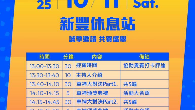 十一月一日「潮九十年代來電五十」主打「老派約會新式心動」,在輕鬆互動中自在相遇,於慈湖留下浪漫回憶;十一月八日「潮七十年代五燈獎」線上海選(初選)正熱烈進行中,邀請熱愛舞台的你踴躍投稿,挺進決賽舞台。尚未額滿梯次持續受理報名,歡迎民眾把握名額,一起把「想當年」玩成當下的高光時刻。