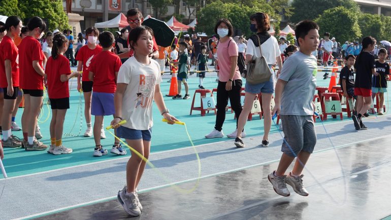 台中體育嘉年華跳繩競賽。(記者陳金龍攝) 記者陳金龍∕台中報導 台中市年度盛事「體育嘉年華」十一日於清水國中舉行,規劃十四個親子闖關攤位,吸引上萬名市民攜家帶眷參與,現場熱鬧非凡。 運動局長游志祥代表市長盧秀燕出席開幕典禮,感謝議長兼市體育總會理事長張清照、議員兼體育總會秘書長蘇柏興支持,讓全民運動深入社區。啟動儀式安排「大球啟動」,由各單項委員會滾動大球,象徵全民齊心推動體育,也為即將出征的全運會代表隊注入滿滿士氣。 台中市年度盛事「體育嘉年華」十一日於清水國中盛大舉行,立法院副院長江啟臣、立委楊瓊瓔、台中市議會議長張清照等啟動儀式。(記者陳金龍攝) 運動局說,活動除親子闖關,還有多元運動展演與樂團表演,並於四個時段發送摸彩券,有機車、電視、腳踏車等大獎,打造「看、玩、聽」三合一的嘉年華盛會。許多市民帶著孩子參與,在連假中體驗運動帶來的健康與歡樂。 運動局表示,體育嘉年華自九十一年舉辦至今,每年吸引超過萬人參與,上半年於大里舉辦的場次更突破一萬五千人次。適逢全運會於雲林舉行,台中代表隊截至十日已斬獲二十金、十四銀、十四銅。
