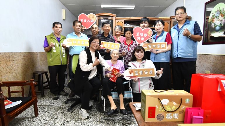 彰化縣長王惠美(前左)拜訪大村鄉百歲人瑞康張作,贈送重陽禮金及禮品。(記者吳東興攝) 記者吳東興∕彰化報導 彰化縣長王惠美十一日拜訪大村鄉人瑞康張作與永靖鄉人瑞詹鎗,致贈重陽禮金一萬元、金鎖片及禮品。人瑞看到縣長等人來訪,笑呵呵歡迎。 康張作阿嬤今年一百零四歲,育有一女一子,二十多歲時先生因病過世,她種田、做草蓆把子女帶大,孩子也很孝順且優秀。康張作一百歲起連續四年參加高齡同學會表揚活動,平時喜歡吃牛奶糖、平安餅,也愛喝冰鎮飲料,子女也會打葡萄汁給阿嬤補充營養,加上阿嬤個性樂觀開朗,身體很健康。 一百零三歲的詹鎗育有二子三女,五代同堂,大家族有七十多人。阿公年輕時從事土水師,兒子從事建材,脾氣及個性非常好,子孫也很孝順。 王惠美表示,縣府推動社區照顧關懷據點,目前在永靖也規劃興建長照衛福大樓,並設置衛生所、不老健身房、育嬰中心、親子館、日照中心等,希望從零到一百歲的鄉親都可以得到最好的照顧。 社會處表示,彰化今年共有二百八十四位百歲人瑞。縣府致力推動各種福利政策,期待所有長輩過得健康又快樂。