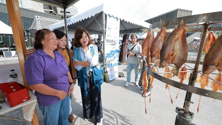 基隆市副市長邱佩琳出席潮嚮漁光市集開幕活動,走訪在地商家與青創攤位。(基隆市政府提供) 記者吳翊慈∕基隆報導 「基隆潮嚮‧漁光市集」十一日於海科館主題館廣場登場,副市長邱佩琳出席開幕活動,並走訪在地商家與青創攤位,與參展團隊互動。她表示,市府致力推動永續文化與漁村產業再生,期望藉由市集活動,讓更多人走進八斗子,體驗山海共生生活美學與海派文化魅力。 邱佩琳指出,「潮嚮」系列活動不僅展現基隆在地產業特色,也鼓勵青年返鄉。市府推動農村再生與地方創生計畫,盼吸引更多年輕世代投入在地發展,讓基隆的文化能量從港都走向全台、邁向國際。 「基隆潮嚮·漁光市集」十一日於國立海洋科技博物館主題館廣場熱鬧登場。(基隆市政府提供) 產發處長蔡馥嚀表示,「潮嚮市集」巡迴系列第二站在八斗子舉行,以「漁光」為策展主題,結合海洋情境展覽、海洋美食市集、海廢創作、漁村導覽及文化手作等多元展區,呈現漁村創新與再生的豐沛能量。她指出,八斗子為全台規模最大的漁港,不僅擁有深厚的漁業底蘊,更在近年展現產業轉型與文化再生的成果。 活動現場以「海洋永續」、「漁村文化」與「海廢藝術」三大主軸,打造沉浸式五感體驗。從海浪聲、光影、觸感到漁味香氣,感受八斗子漁村的生活氣息。 「海廢浮球藝術DIY」由海大老師陳信助指導,帶領民眾透過創意手作,學習海洋廢棄物再利用的價值與環保理念。現場另設有闖關遊戲區與導覽活動,讓遊客在互動體驗中了解漁村文化與海洋生態。