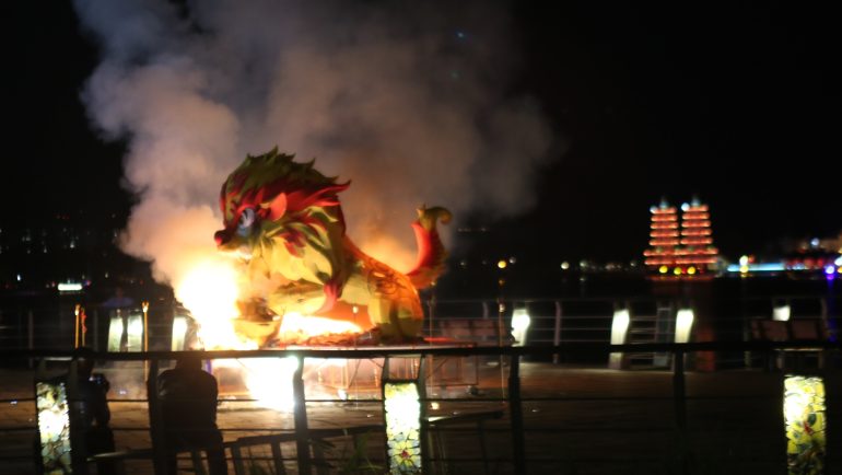 二0二五高雄左營萬年季,12日最後一天,熱鬧的文創市集與傳統文化活動,圍繞整個蓮池潭四周,處處都是人山人海,晚上則迎來活動的最高潮,進行千人火獅踩街嘉年華,以及最終在清水宮前眾人共同恭送火獅儀式燒化升天,一起祈願國泰民安、風調雨順中畫下圓滿的句點。