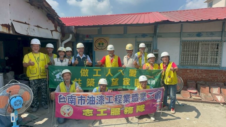 南市勞工局「做工行善團」志工,雙十連假持續上工,分別前往後壁、關廟為弱勢家庭房屋修繕,後壁上茄苳老屋災後受損嚴重,經志工接力修繕十二日完工,讓老屋重獲新生命,案主臉上綻放陽光般開心笑容,這是做工行善團完成的第三百一十戶有情有疼心ㄟ厝。
