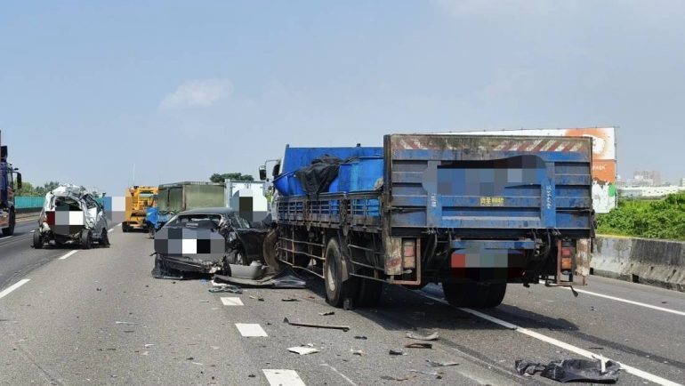 國道一號南下三百三十二點四公里、仁德路段十三日上午發生連環追撞事故,六人輕傷。(民眾提供) 記者黃文記/仁德報導 國道一號南下三百三十二點四公里、仁德路段,十三日上午十時四十分許發生五車連環追撞事故,造成六人輕傷送醫。警方獲報後趕抵現場進行救援與交通疏導,事故造成後方車流回堵八公里,於上午十一時四十二分排除,全線恢復通車。 國道第四公路警察大隊調查,二十七歲楊姓男子駕駛大自貨車行駛於輔助車道時,疑因未保持行車安全距離,追撞前方由四十七歲王姓男子駕駛的自小客車,隨後再推撞五十四歲莊姓男子駕駛的自小客車,再追撞七十歲林姓與六十二歲潘姓男子駕駛的兩輛自小貨車,造成六人受傷送醫。全案肇事相關責任由四大隊新市分隊依規定處理。 國道第四公路警察大隊表示,事故發生後現場交通一度受阻,經新市分隊協助排除後恢復順暢。第四大隊提醒,用路人行駛高速公路務必注意前方車距與路況動態,避免因一時分心或疏忽釀成連環追撞事故,危及自身與他人安全。