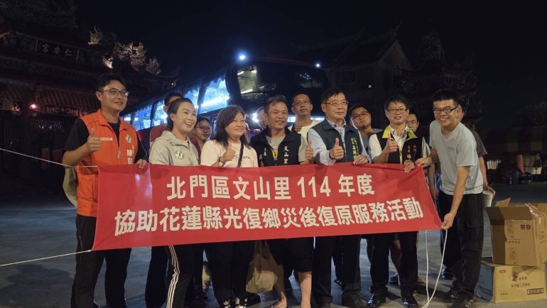 支援花蓮縣光復鄉因馬太鞍溪上游堰塞湖潰堤所致災情,市府十五日凌晨再度擴大動員,媒合市內緊急救援隊,於零時三十分出發,前進光復鄉佛祖街執行任務,協助地方加速救援與復原工作,其中北門區在丹娜絲風災中也曾受創,在各界協助下逐步恢復,如今換他們化感恩為行動、伸出援手,一起送愛至光復。
