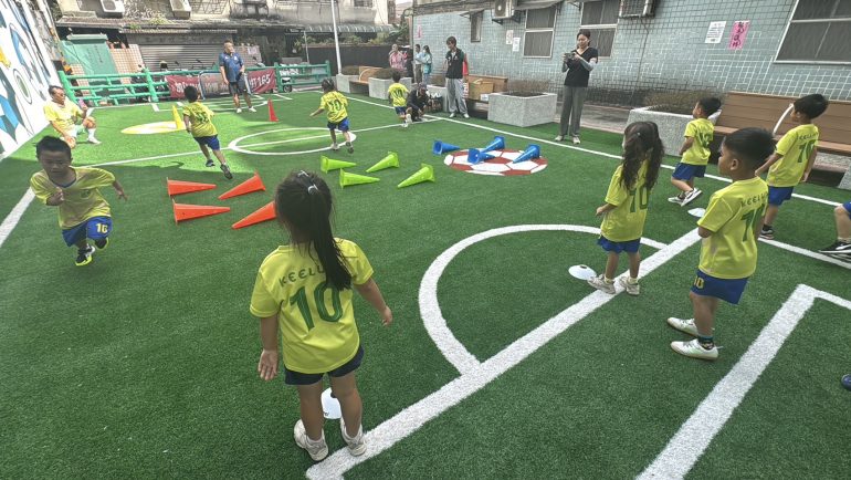 東明路七十七巷轉角公園變身迷你足球練習場。(記者王慕慈攝) 記者王慕慈∕基隆報導 「網壇首位市議員國手」陳宜爭取將基隆市信義區隱身東明路七十七巷弄的舊的轉角公園,變身成迷你足球場,綠色人工草坪、搭配牆上的足球男孩彩繪,周邊牆面精心設計粉刷,小小足球員在教練指導下練習帶球射門,成為家長帶孩子最佳放電的運動場所。 信義區禮儀里東明路七十七巷內,原本有一座小型公園,過去經常被停放機車,經里長郭金德及市議員陳宜努力爭取,變成運動風迷的你足球場,不僅提供小朋友休閒運動場所,周邊居民也可以休憩,提高老社區巷弄CP值。 里長郭金德說,這塊空地最早是警察局宿舍,年久失修成為髒亂點,區公所先改成鄰里公園,有遊具等,但長期日曬雨淋,損壞不勘才闢成綠地;轉角公園剛做好時,空有綠地,四周老舊公寓牆面黑漆漆,里長就和住戶溝通,同意彩繪牆面,與市議員陳宜爭取地方建設美化。 東明路七十七巷轉角公園變身迷你足球練習場,市議員陳宜親自上場與小朋友同樂。(記者王慕慈攝) 郭金德表示,地方建設經費得來不易,每天都會吸引民眾前來休憩打卡,希望里民共同愛護,也掛上告示牌,籲請民眾不要來遛狗,機車騎進草坪,記得把垃圾帶走,共同維護公園的環境整潔。 當初構想是因應迷你足球場場域,把牆面漆繪成足球運動意象,意外成為休閒打卡的熱門景點。 足球場上,請專業教練在一旁指導小朋友,做好基本動作,動作落實,小小足球員練習帶球射門,相當有成就感。家長說,這個轉角公園很不一樣,設計很漂亮,整個草坪很專業,不用再像以前要到海洋大學去人擠人,或找適合場地,鄰里公園能有此巧思真的很不錯。
