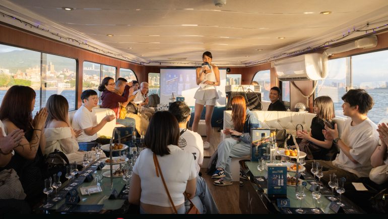 有人每天送心儀對象回男朋友家、有人在前任家樓下守候整日,愛情的滋味,總是讓人又甜又暈。此次發起的「58金高千日醇x百人暈船仔愛你一萬年船上品酒會」活動,吸引了上千位有故事的暈船仔報名。隨著海風拂面、酒香縈繞,現場氣氛從微醺到熱烈,讓這場活動被稱為「史上最暈品酒會」,暈船仔們紛紛笑說:「完了!真的要下不了船了!」