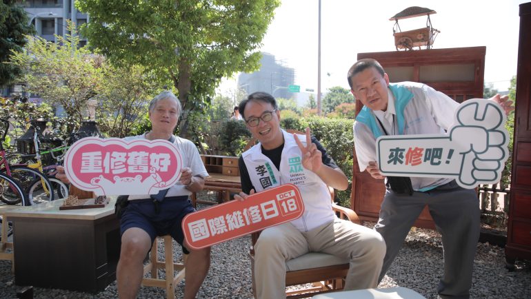 響應國際維修日,新竹市政府十八日參與由環境部發起的「臺灣維修日~全臺大串聯」,全臺各地維修團體舉辦維修推廣行動,讓修復文化遍地開花。今年由全臺兩處維修示範點新竹市將軍村修復柑仔店、及桃園棄而不捨修惜站,進行線上揭牌與串聯儀式,共同響應呼應「要修不要丟」的減廢精神,現場也舉辦再生家具、修復腳踏車的拍賣活動,以及提供維修諮詢、木作修復展示攤位,讓民眾親身體驗修復文化的價值與樂趣。