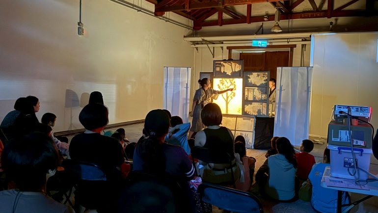 跨越海洋與歷史的光影偶戲《鯨生GEIO》在花蓮文化創意產業園區盛大登場,吸引許多市民參與。(花蓮市公所提供)