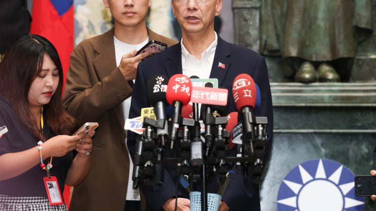 國民黨內部分人士憂心新任黨主席鄭麗文恐「令不出黨中央」。現任黨主席朱立倫(中)19日受訪呼籲少擔憂、多加油、大家團結努力。(中央社)