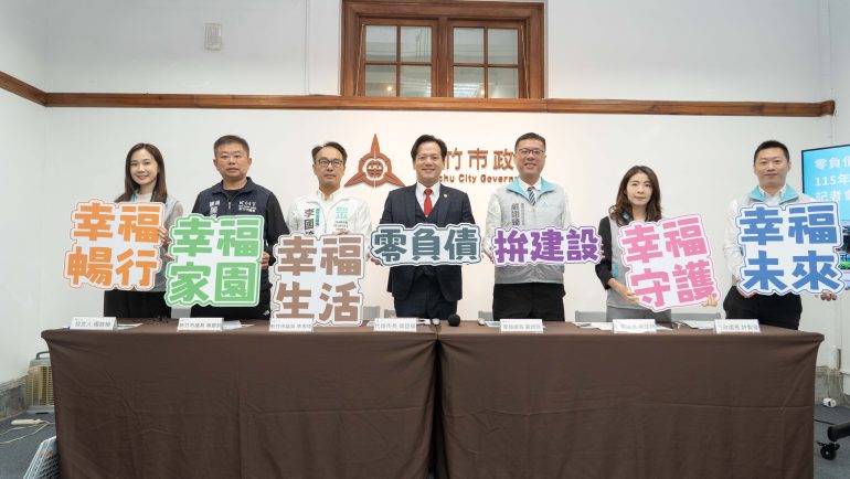 新竹市在財政收支劃分法修正後,明年度統籌分配款將增約二百一十四億元,市府二十一日召開預算記者會,以「零負債、發現金、強社福、穩經濟、拚建設」幸福五環作為完整架構,讓各項建設與福利彼此連動,新竹市議會國民黨團總召陳慶齡及新聯線政團總召李國璋也到場表達對一一五年度總預算的支持。