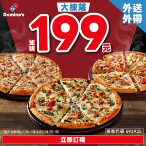 達美樂春假優惠開跑 滿299元加199元加購大披薩