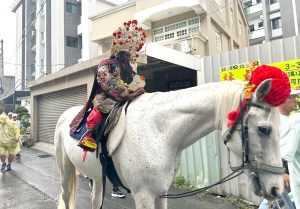 帝爺公騎白馬 穿雨衣遶境