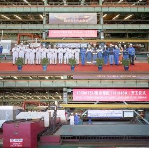 滬東中華為Seaspan建造第四艘1.36萬TEU型貨櫃船開工